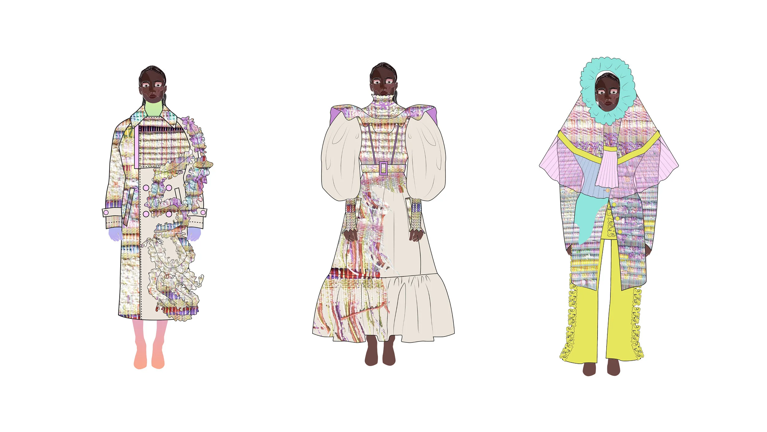 Through her Redress Design Award application collection, MATRIARCADO, Isabel Annaiss highlighted the abuse of girls, lost childhoods and the oppression of women in Peru, including the stories of her grandmother and Lina Medina, a native of Huancavelica. In collaboration with a small community in the highlands of Peru whose livelihood is being negatively affected by the growth of fast fashion Isabel Annaiss creates up-cycled textiles woven from a wide range of textile waste collected from her family-owned factory.