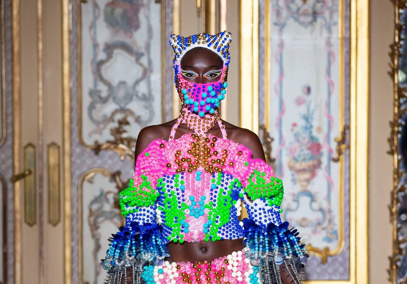 Redress Design Award 2014/15 First Prize winner, Kévin Germanier, launched his eponymous brand in 2018, which transforms discarded beads and other waste from the fashion industry into vibrant, upcycled couture with the aim to change the preconceived image of sustainable fashion by creating a glamorous, dazzling and desirable clothing line for modern consumers.