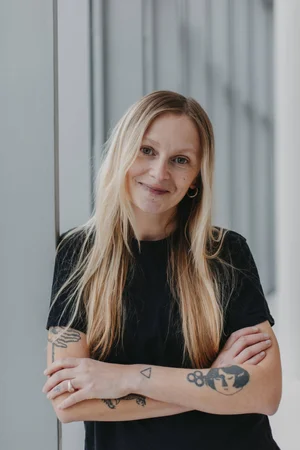 For her Redress Design Award (formerly the EcoChic Design Award) 2015/16 collection, Patrycja was inspired by the saying “Heaven as a place on earth” and she wanted to make clothes that were a shelter for a heaven-like space. She combined the up-cycling and reconstruction design techniques by hand-weaving damaged textiles and unraveled secondhand garments, which she sourced from fabric wholesalers and secondhand shops in Cracow.