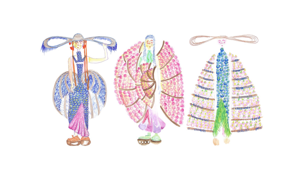 Silvia’s Redress Design Award collection, ‘REGENERATIVE FOLKLORE’, honours the designer’s organic farmer parents and cultural heritage with organic fibres and traditional Spanish materials like dry branches. The collection focuses on regeneration through its use of biodegradable plant-based, organically certified fibres such as pineapple, nettle, organic cotton, Tencel, banana, and esparto dry branches. Silvia also uses GOTS-certified and plant-based dyes from invasive species to simultaneously address biodiversity concerns. To mitigate waste, she also uses zero-waste patterning and adopts a made-to-order approach.