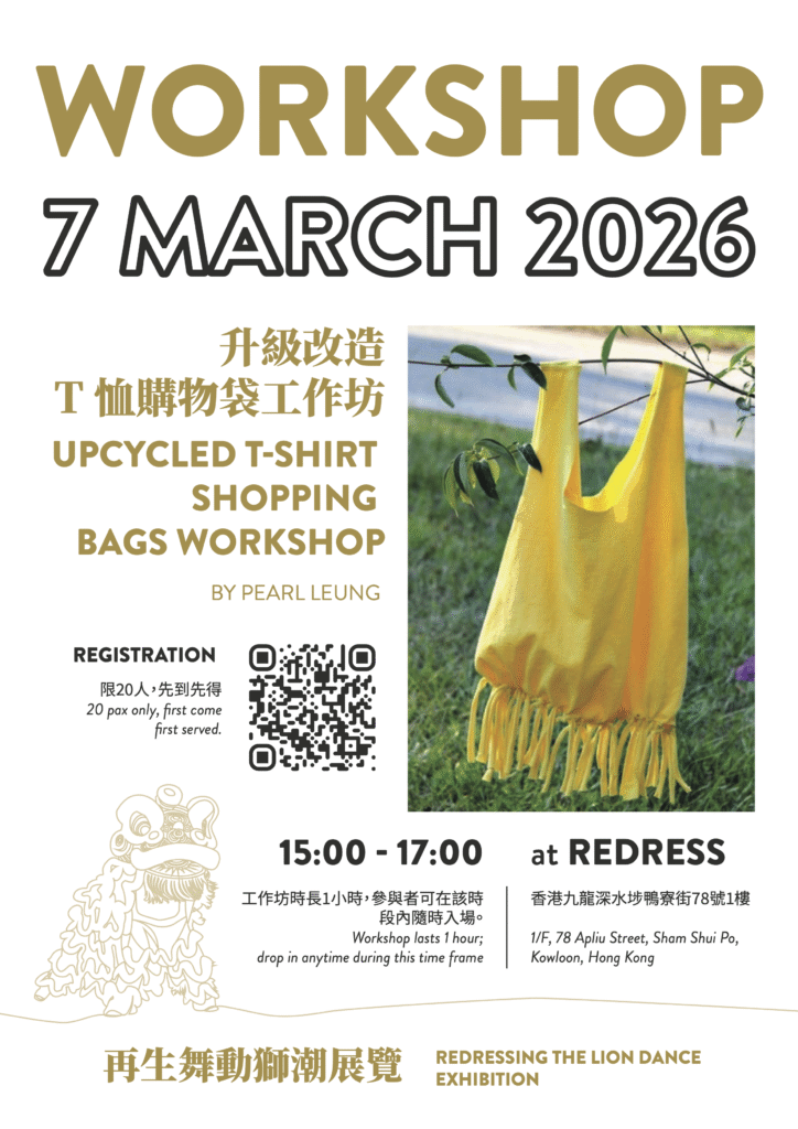 On Saturday, 7 March, Redress Alum, Pearl Leung of gong1long4coi4zeon6 led an upcycling workshop turning unwanted T-shirts into a tote bag at our very own secondhand shop, The Redress Closet.