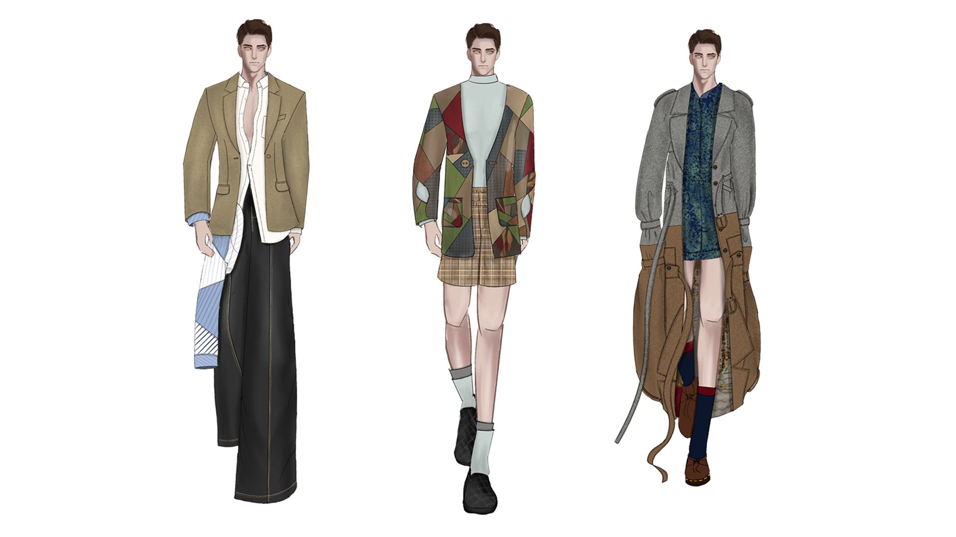 “Redress 设计大赛” 时尚系列 方爱燕的 “Redress 设计大赛” 系列 “Longest Goodbye”,灵感来源于她从祖父母身上目睹的痴呆症。该系列采用了拆解的轮廓来代表记忆丧失,拼接来描绘记忆不连贯,并将服装组合在一起,以反映穿着熟悉服装的安全感。方爱燕从二手市场购买不受欢迎的、损坏的西装,并将它们与之前项目剩余的衬衫相结合,创造拼接纺织品来制作她的造型。