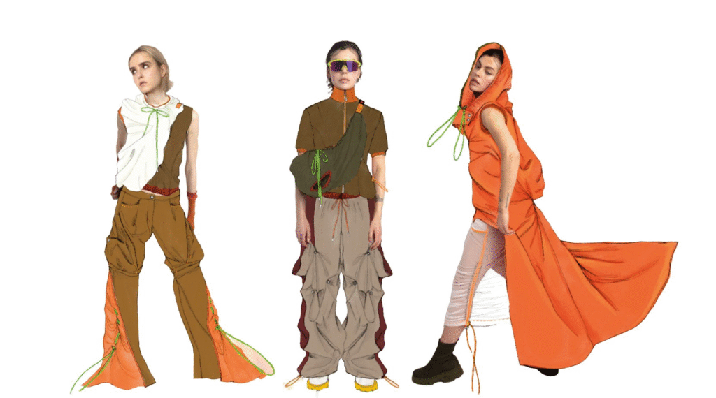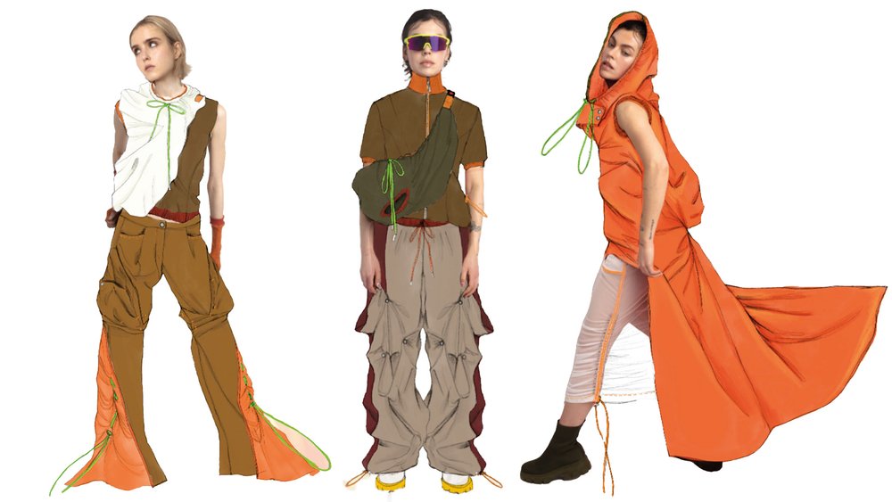 Dayoung “Redress 设计大赛” 系列 “Hyper Bobusang; Beautiful sweat” 灵感来自于韩国传统商人‘Bobusang’,他们使用一种称为‘Ji-gae’的框架携带大量商品。该系列专注于满足实际客户需求,提供具有功能性的穿着外壳,让穿着者在旅行时 “美丽地出汗”。Dayoung利用二手服装和受损的废料,创造出可转换的服装,例如可以变成袋的连帽衫,以及可以用于背包和套头衫的可快速固定的口袋插入件,提供了多样性和持久性。