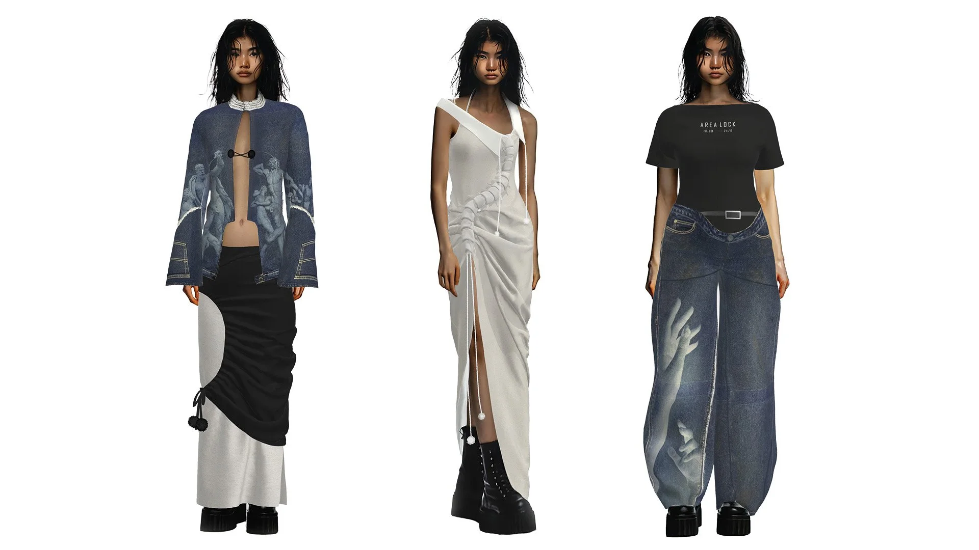 这个系列中的图案印刷设计与每个接缝和剪裁线对齐,创造出环绕身体的无缝艺术展示。这种对细节的关注可以延长衣物的使用寿命,使穿著者能够更长时间欣赏和保留这些衣物。