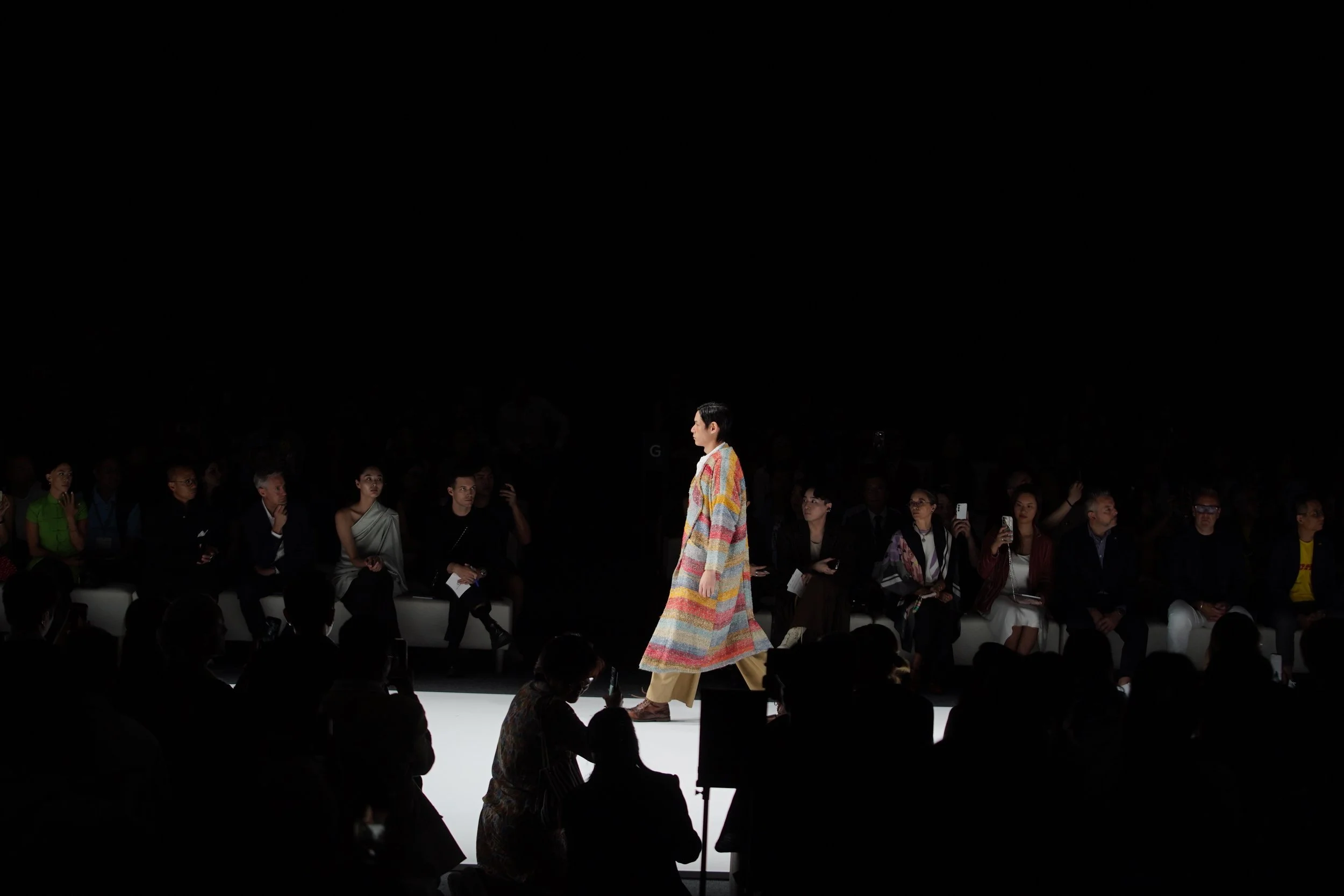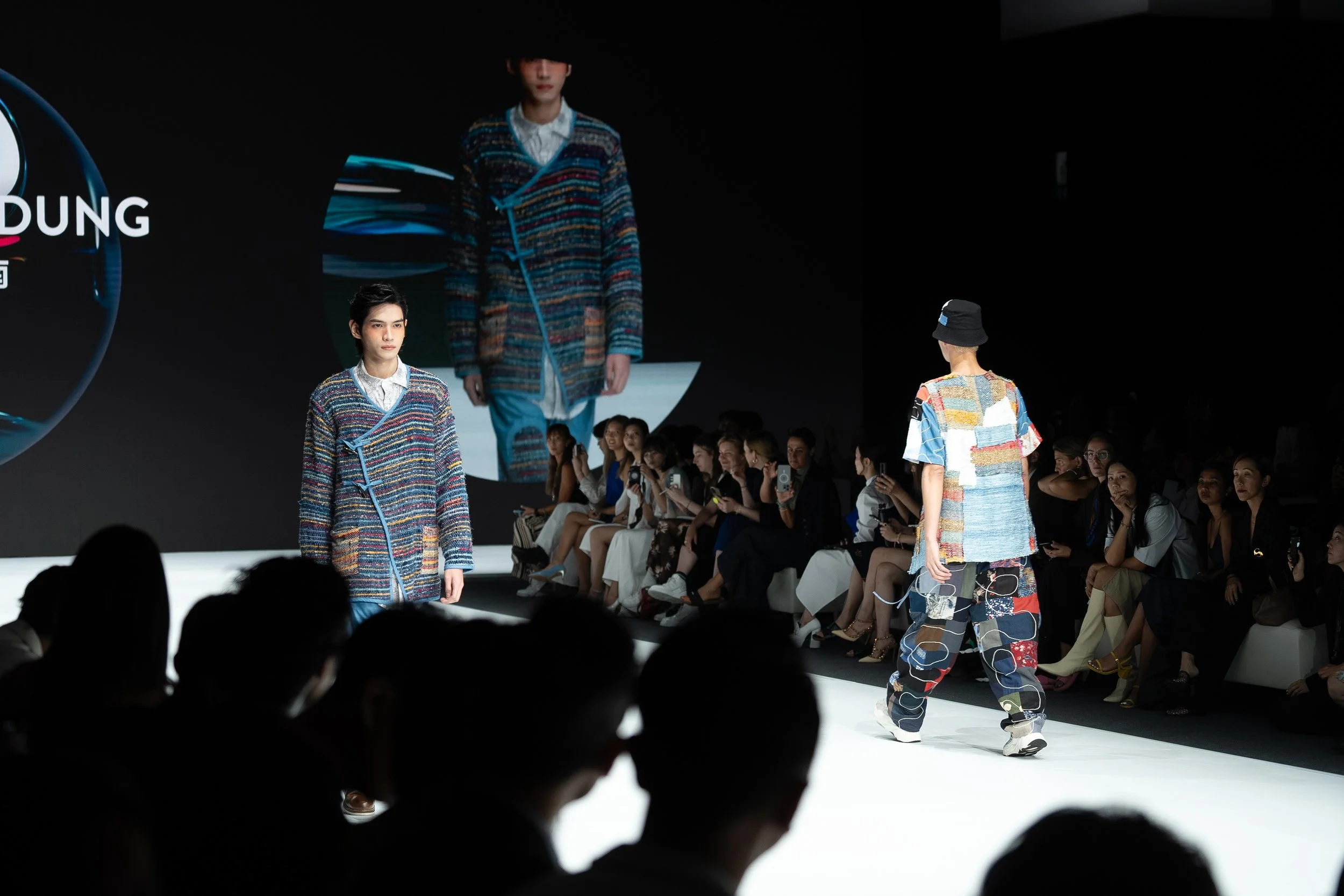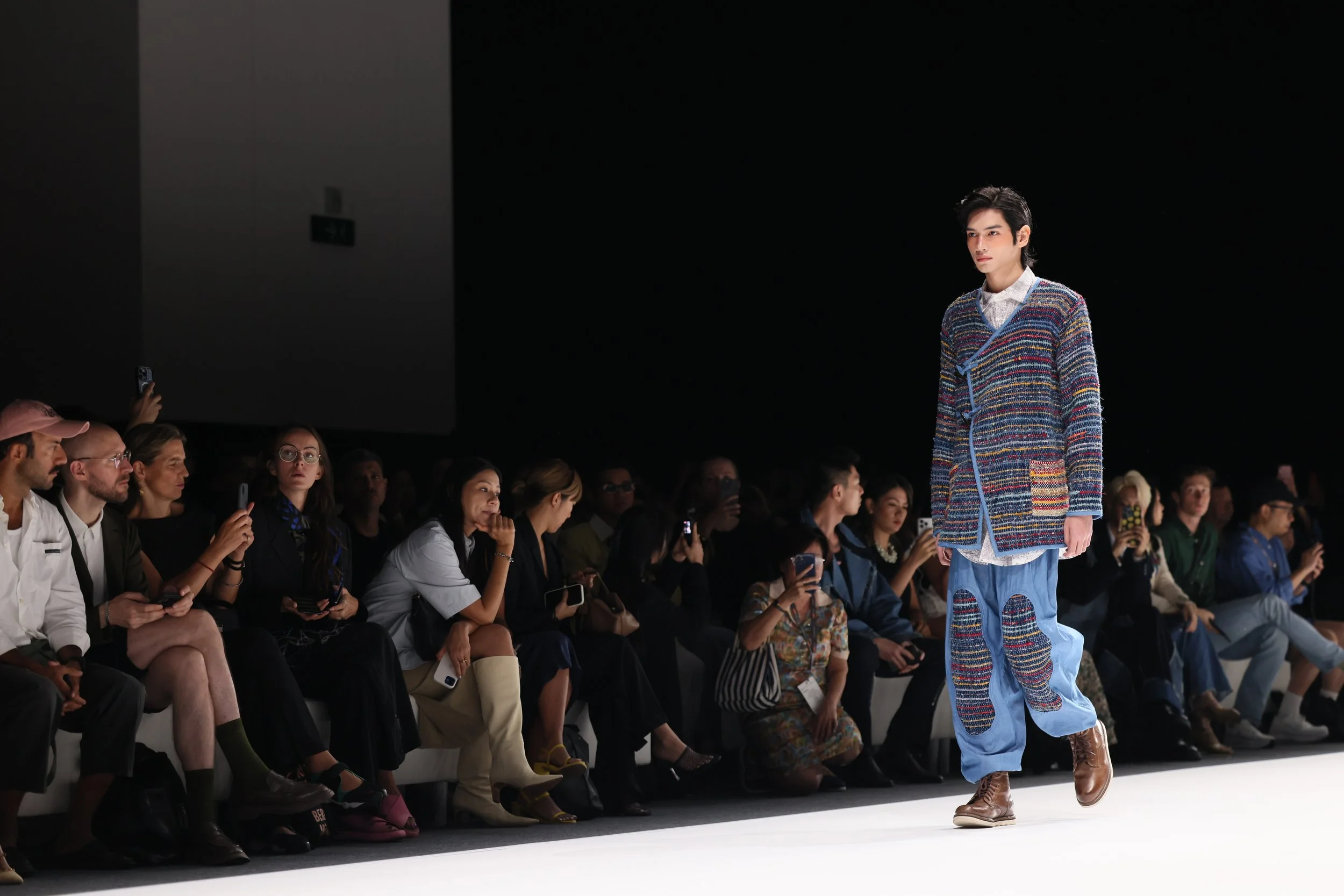 我的「Beyond Illusion」系列融合了古老的裂织技术(sakiori)和传统的天然靛蓝染色方法,搭配现代剪裁。我使用了由农业废料制成的菠萝纱线、废弃的布料、损坏的纱线和我之前系列剩余的布料。所有材料都来自本地,并且我采用了单一纤维设计,便于回收利用。这样的设计结合了古老与现代既实用又时尚。