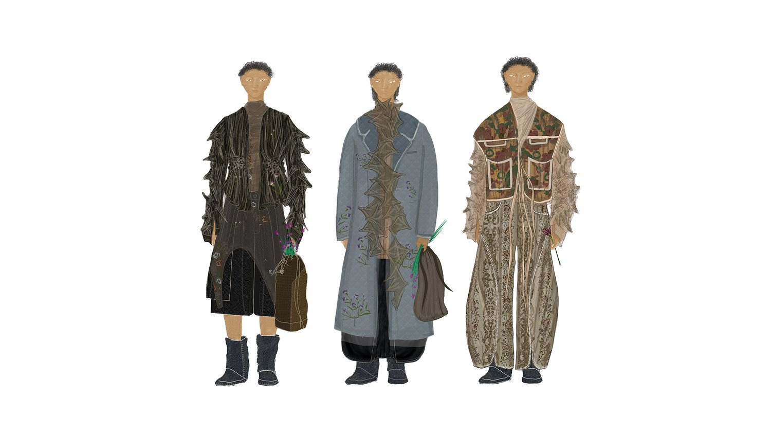Anchita 的 「Redress 設計大賽」系列「Flowers and Revolution」靈感來源於花朵作為和平象徵的象徵意義。精緻的花卉圖案與大膽的聲明式服飾交織在一起,營造了現代時代的視覺表現。該系列利用了廣泛的廢料,包括室內裝飾面料、手繪絲綢、剩餘材料,以及咖啡和鐵鏽等自然染料。Anchita 使用 bandhani 或 shibori 的染色技術,將從手繪絲綢工作室救出的紡織廢料中的圖案融合在一起。為了鼓勵人們長期保存服裝,每件衣服都包含了一個縫補工具包和標籤上融入的回收信息。