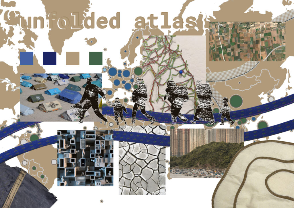 Hanzhang的Redress設計大賽系列作品「流徙版圖」,從文化圖案和自然元素中汲取靈感,並通過數學公式進行詮釋。該系列將舊帳篷升級改造為拼接設計,並採用工業廢棄物料製成的膠帶,同時重構二手牛仔褲和襯衫,打造出呈現地形圖案的造型。其中一款零廢棄的背心、連帽衫和半裙採用可調節尺寸設計,兼具多功能性與持久性。為提升可回收性,Hanzhang運用模塊化結構,使磨損部位可被修復、修改或改造成新單品。