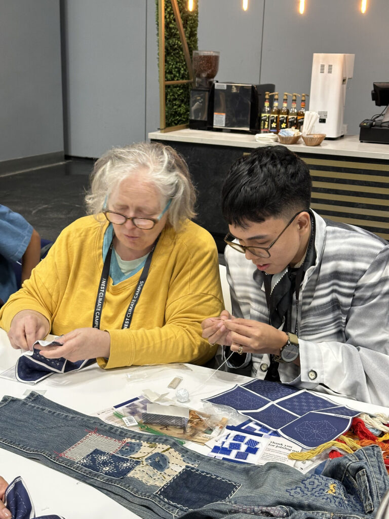 三位Redress歷屆參賽設計師——金蓓雯、Damini Mittai與Jann Christian Bungcaras——參與了整日緊密行程,包括專題討論、交流活動、圓桌會議等多項議程。這些活動全面推動全球應對氣候變遷的各項關鍵領域,涵蓋再生農業、金融體系、人工智能技術、平等夥伴關係、社會正義與性別平等。