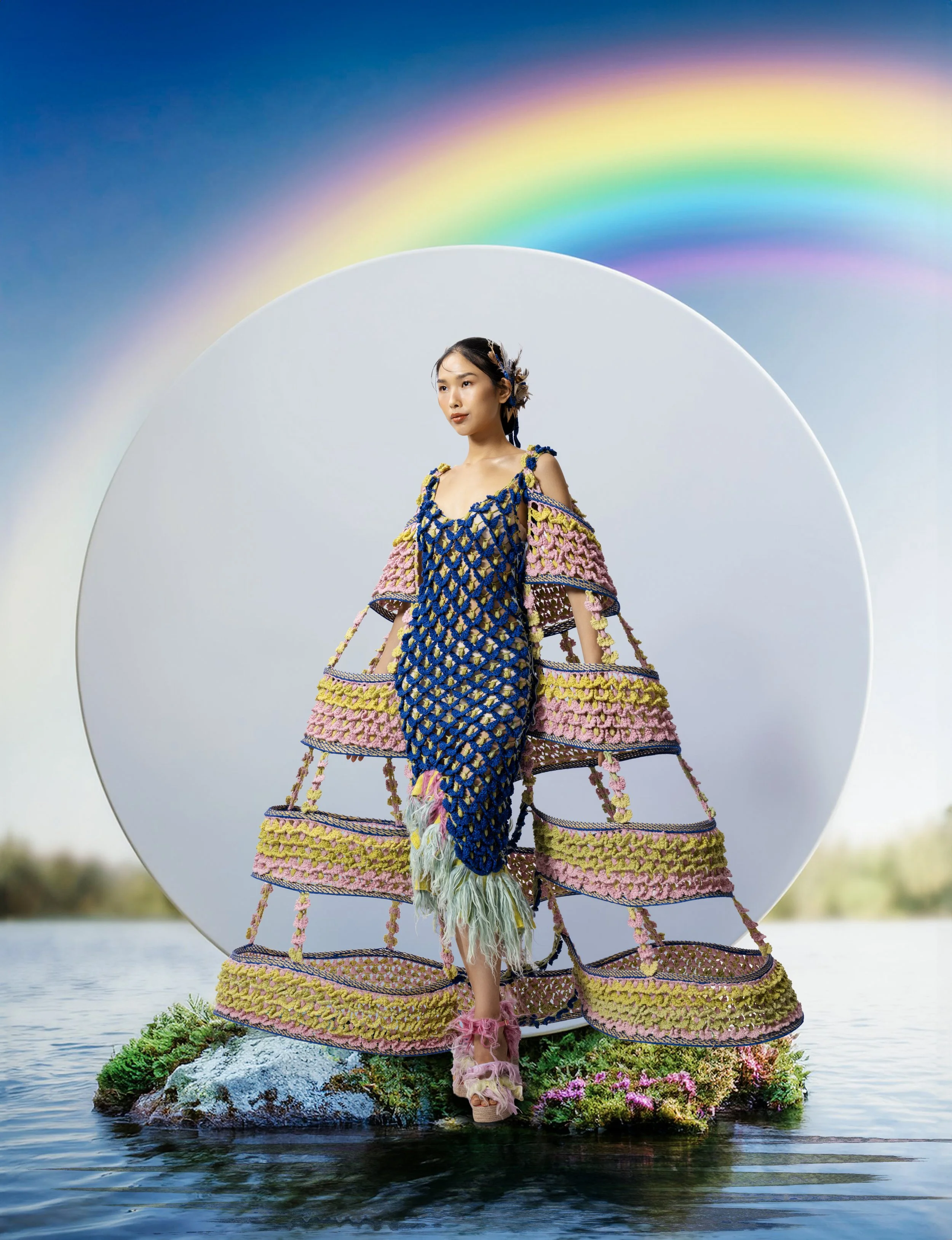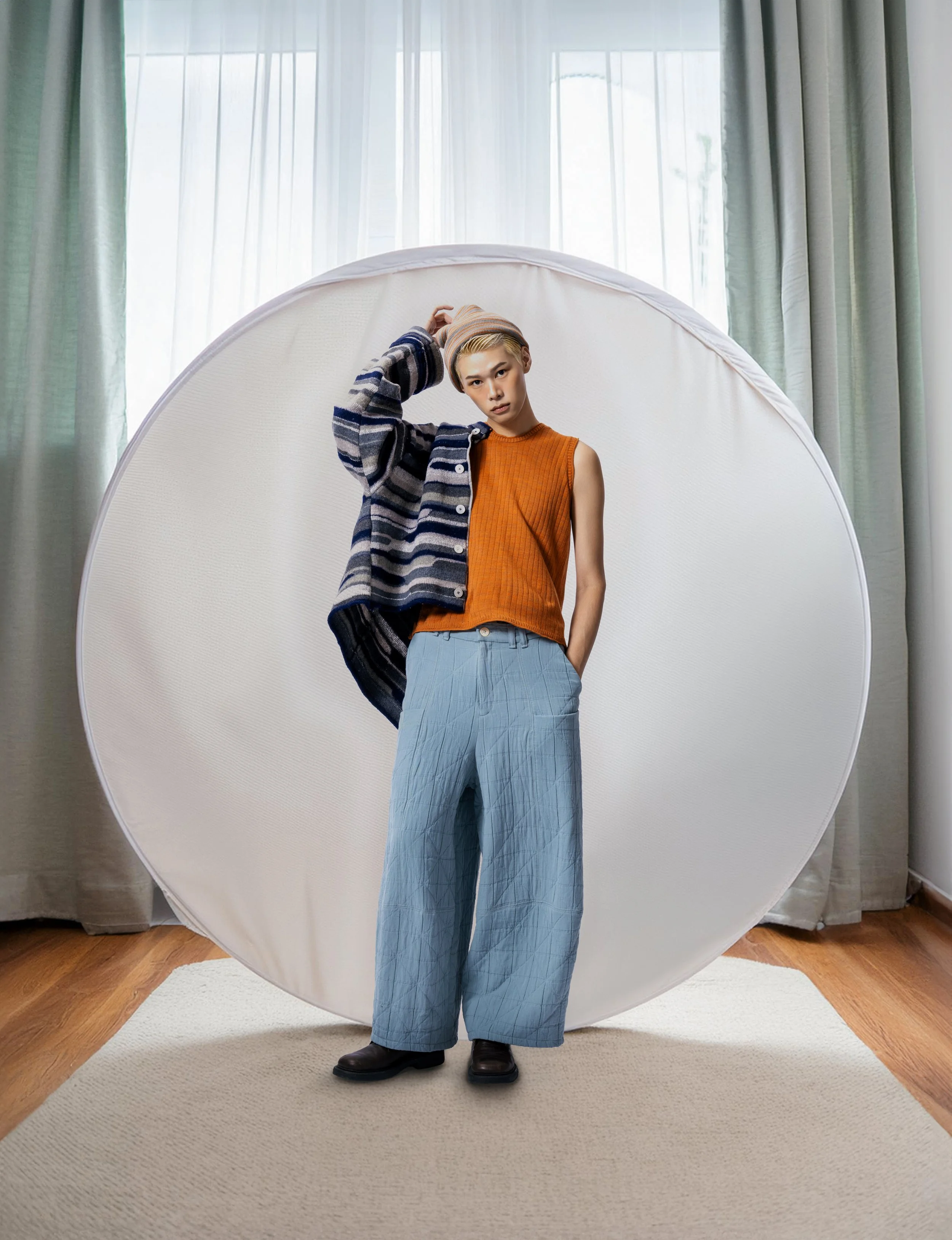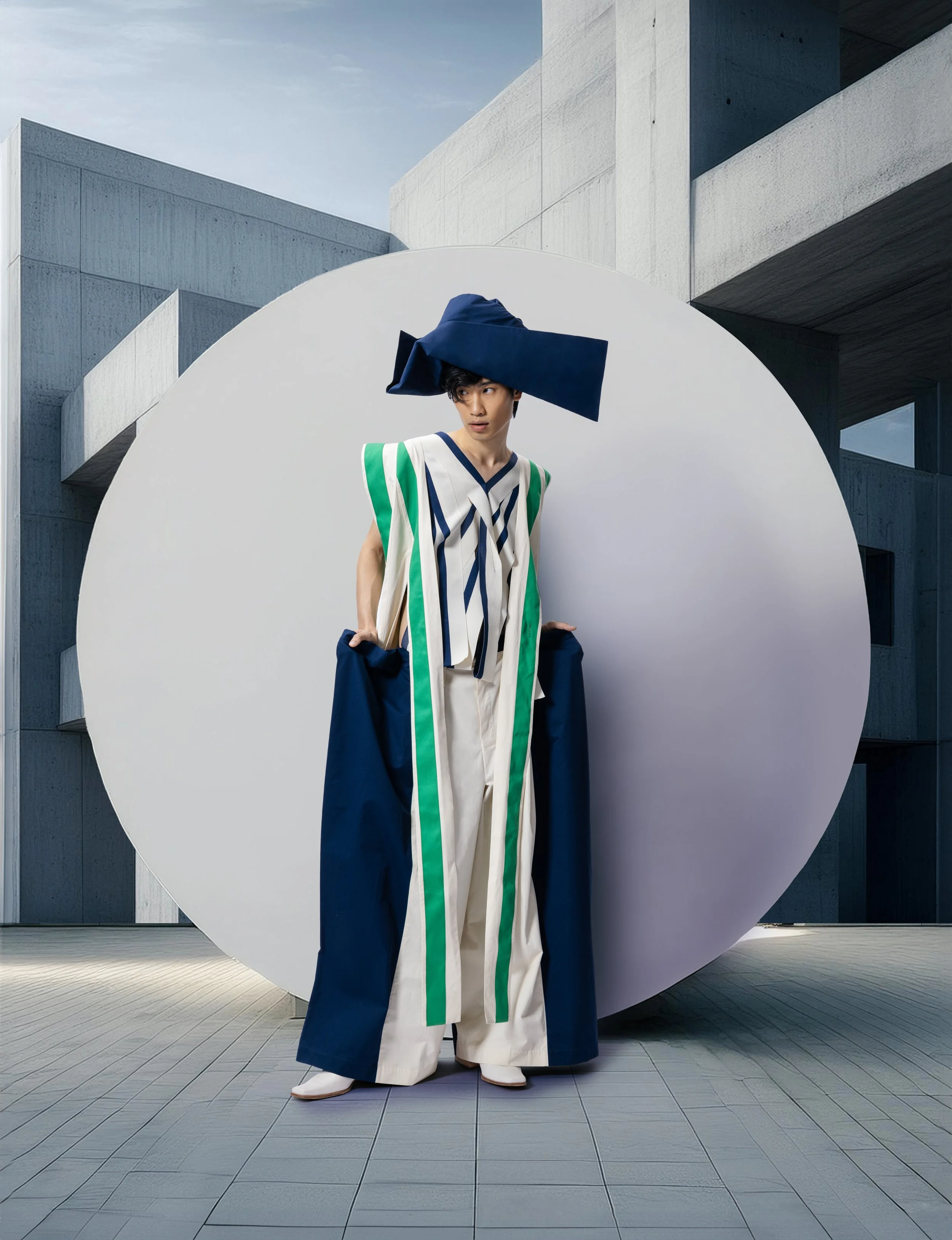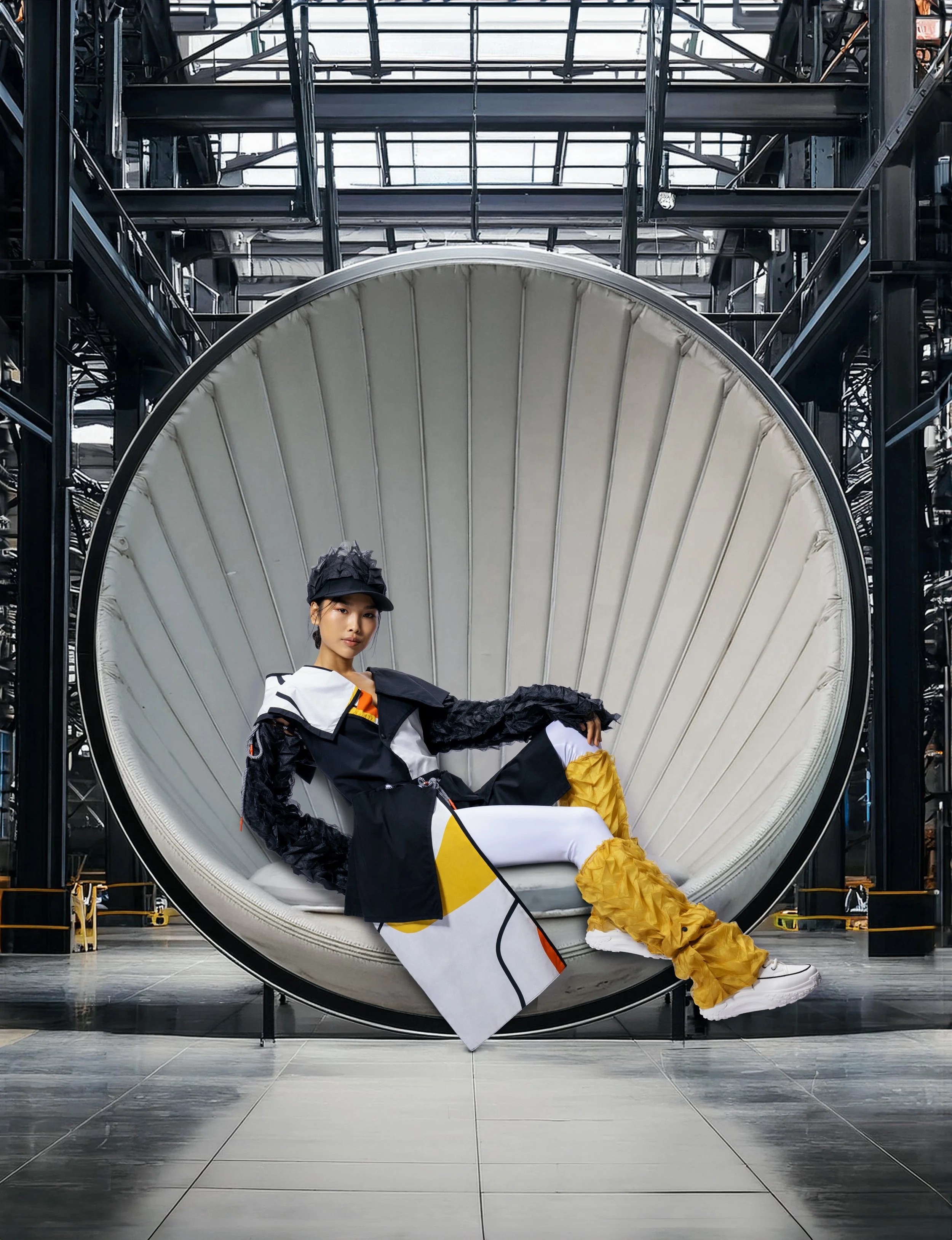The circular aesthetics displayed in the photoshoot pay tribute to the role of circularity in driving fashion towards a more sustainable future.